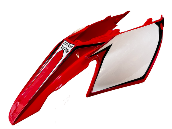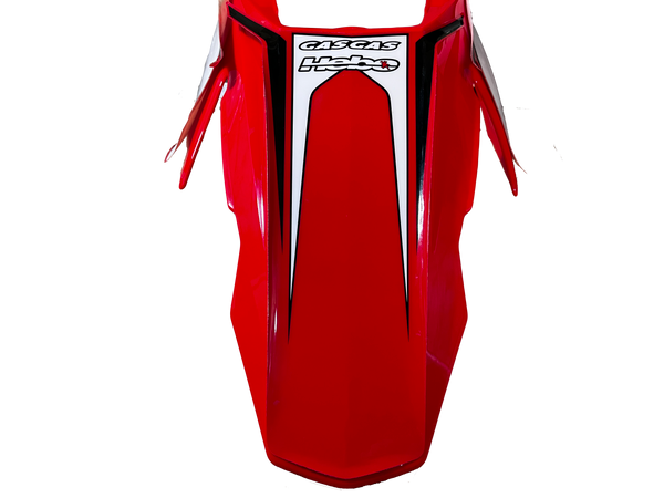 Gas Gas EC250, FSR450, 2007 Model Year, Red Rear Mudguard with Decal, Genuine Gas Gas, NOS, Part Number BE250720007, Decal is in Good condition, but may require re sticking on some edges, Will fit other EC models, just need to remove Decal only, as this is correct Decal for 2007 EC250/FSR450 only
