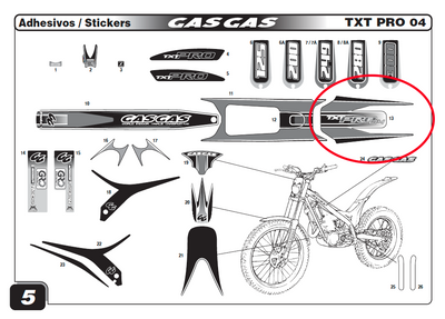 Gas Gas TXT 300 Racing 2011, Airbox Decal Kit, Genuine, NOS
