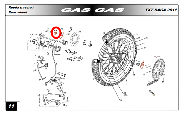 Gas Gas TXT, Red Anodised Rear Wheel Axle Bush, Genuine, NOS, BT55000023011